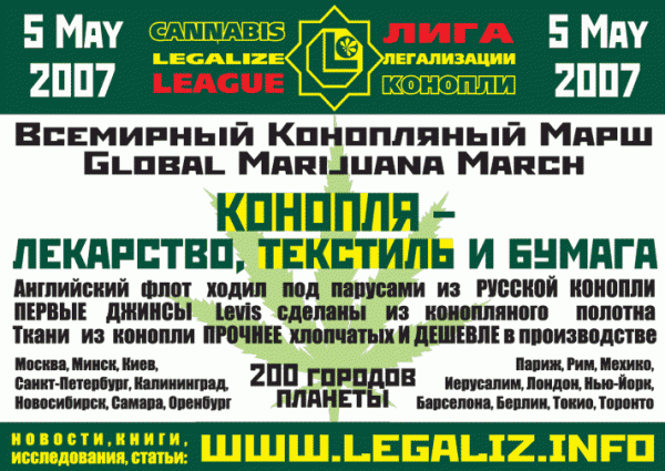 - GlobalMarijuanaMarch.org/2007.php is archived at this internet archive. Some of the linked pages are archived too. It has links for cities, reports, images, and videos.