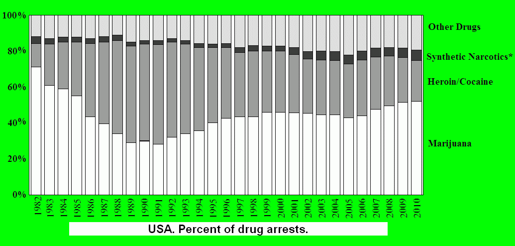 Marijuana arrests accounted for 52% of all U.S. drug arrests in 2010.