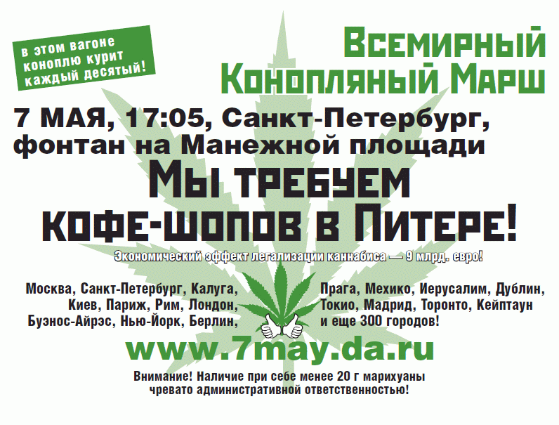 - Flyers: legaliz.info/Agit/7_May_Spb_Stickers_A6.pdf. Right-click link, and save PDF.
