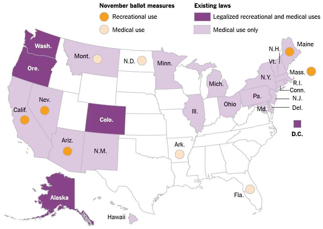 | After the US election, marijuana could be legal for recreational or medical use in 29 states. |